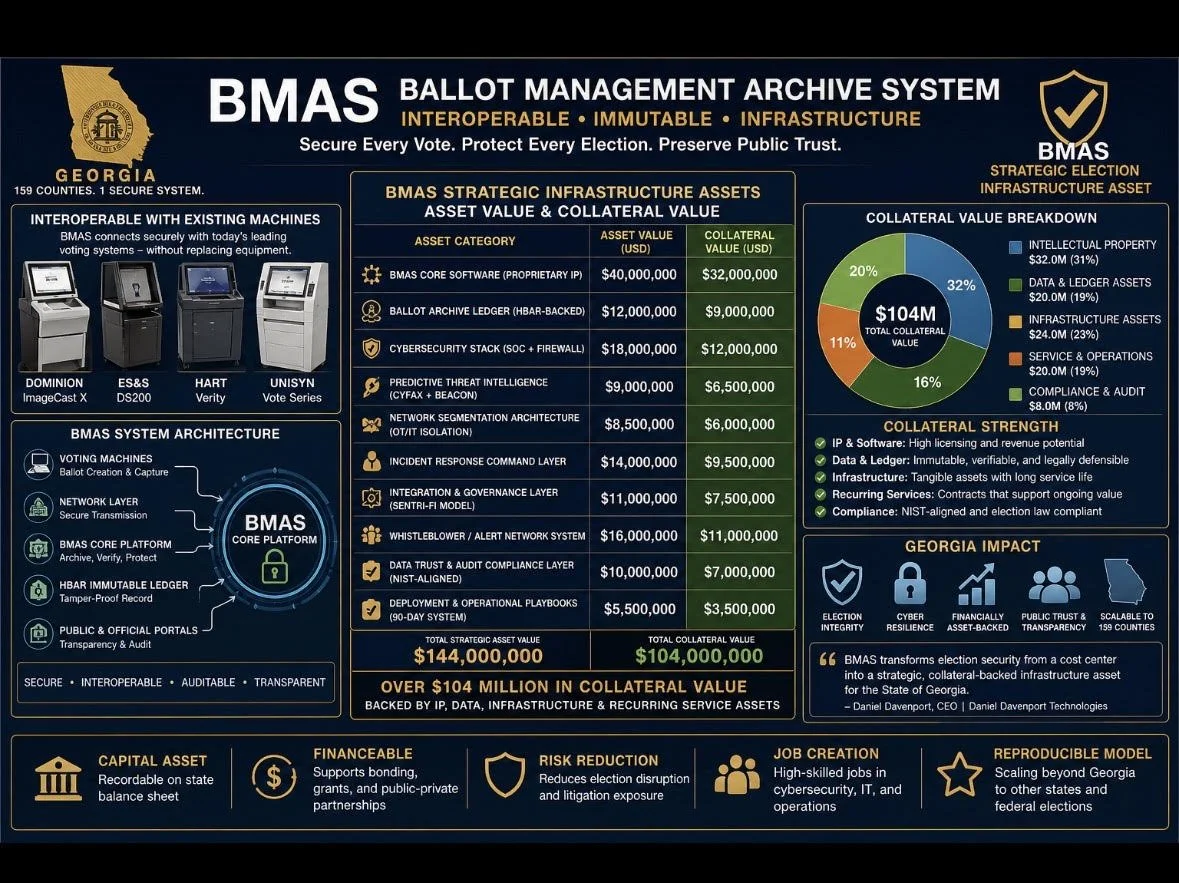 The Ballot Management Archive System (BMAS) represents a strategic infrastructure layer—not a replacement system—that is interoperable with Georgia’s existing election equipment and processes.
